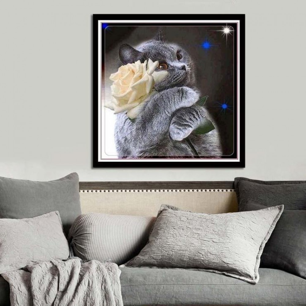 2019 Hot Sale Grey Cat Flower Diy 5d Cross Stitch Diamond Painting Kits UK VM0031