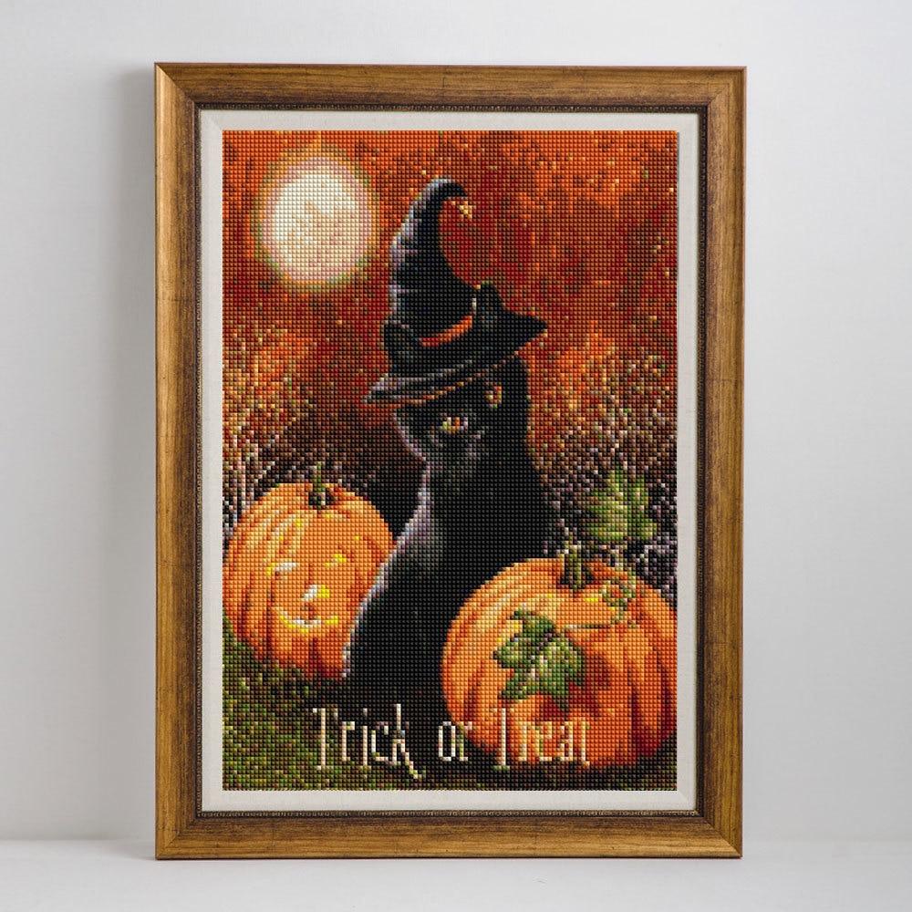 2019 New Hot Sale Halloween Magic Hat Cat And Pumpkin 5d Diamond Diy Paint Uk VM01302
