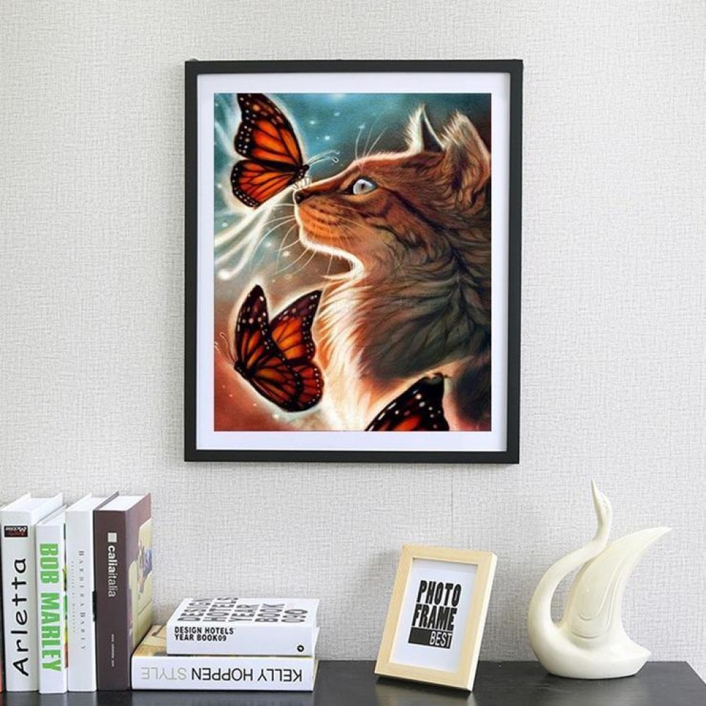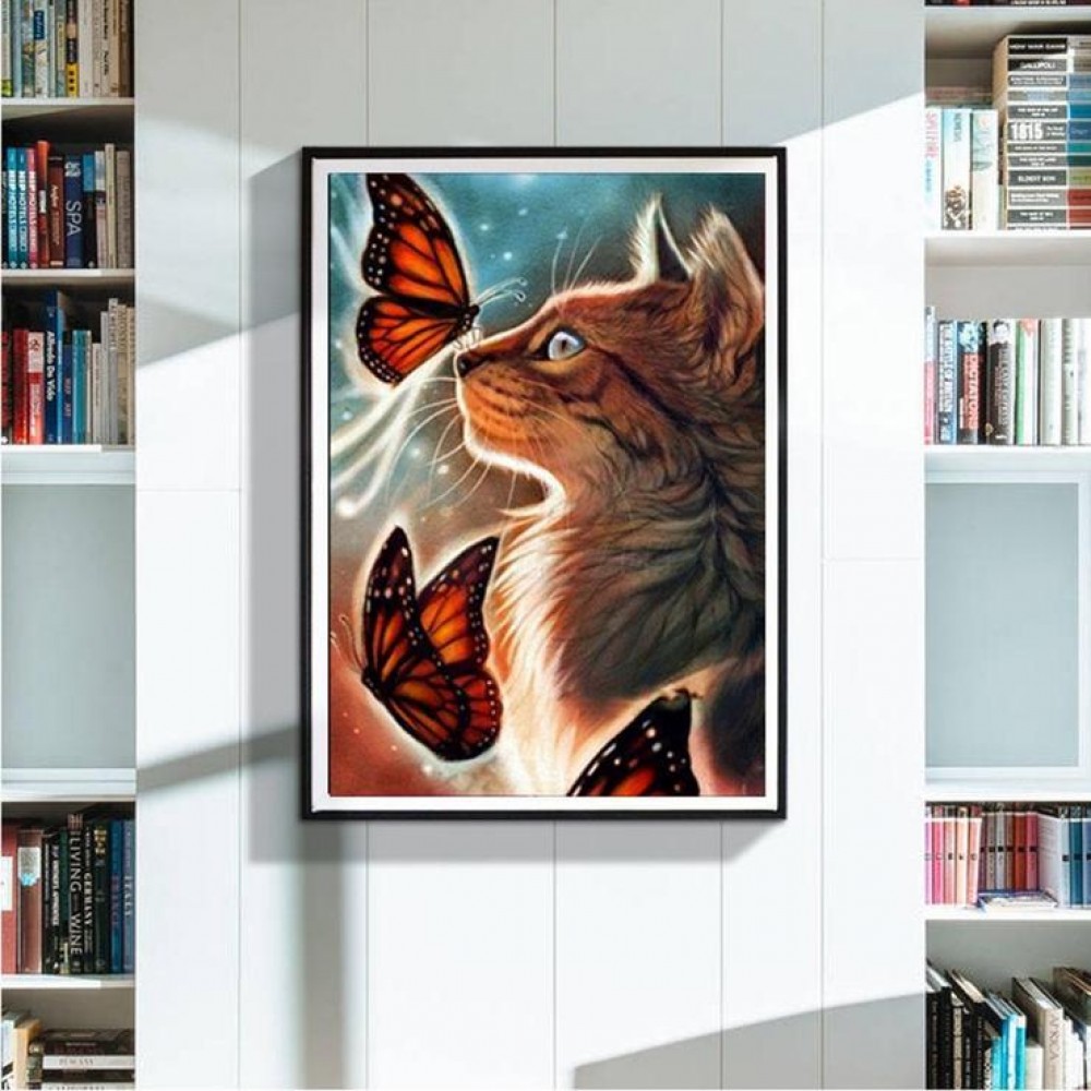 Affordable Best Gift Dream Cat And Butterfly 5D Square Diamond Painting UK VM1129