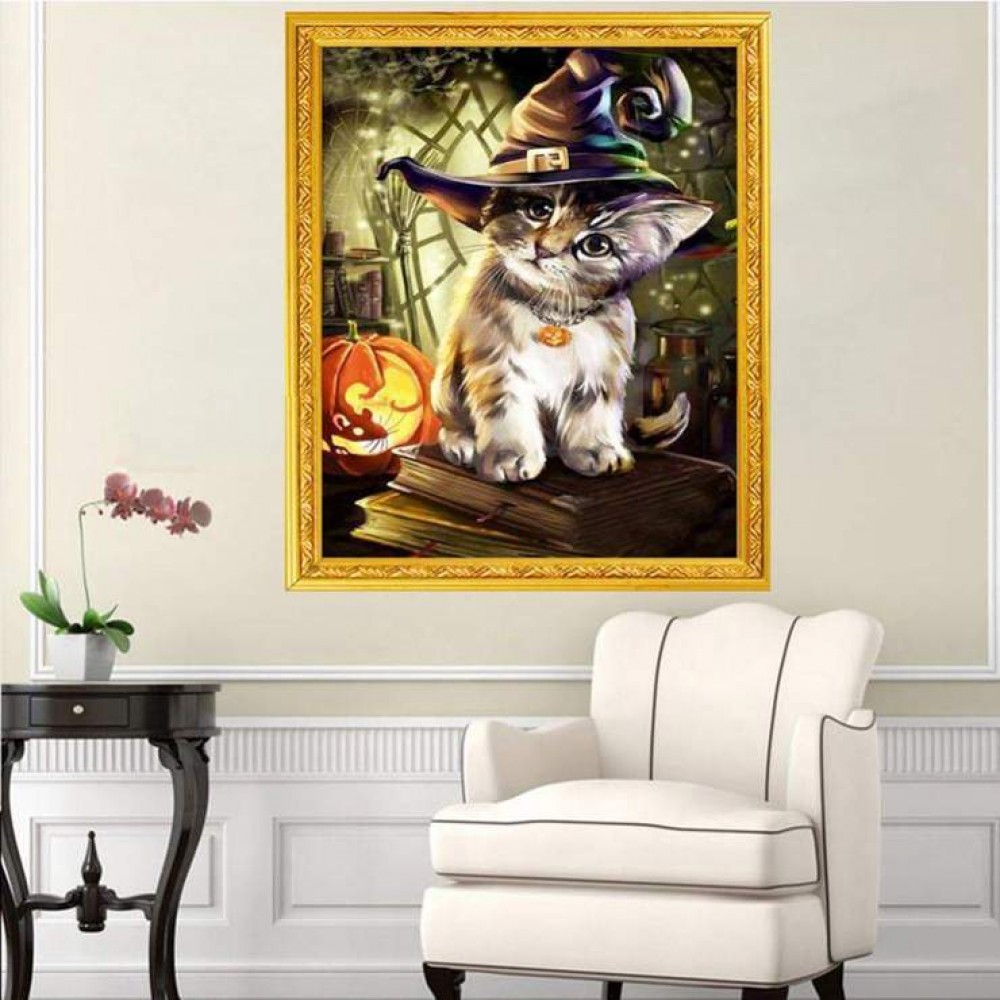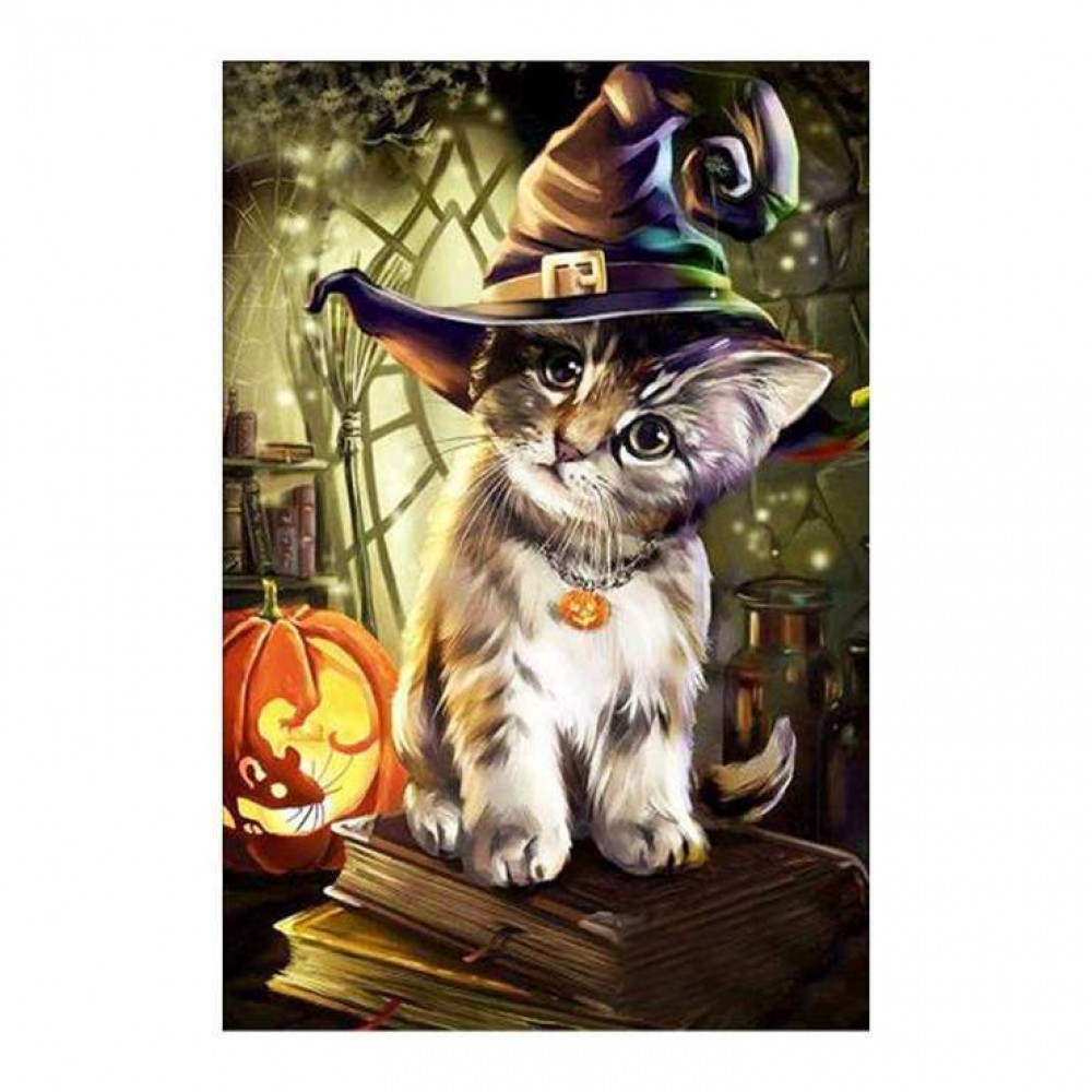New Arrival Hot Sale Curious Cat Wears Magic Halloween Hat Diamond Painting Kits UK VM0057