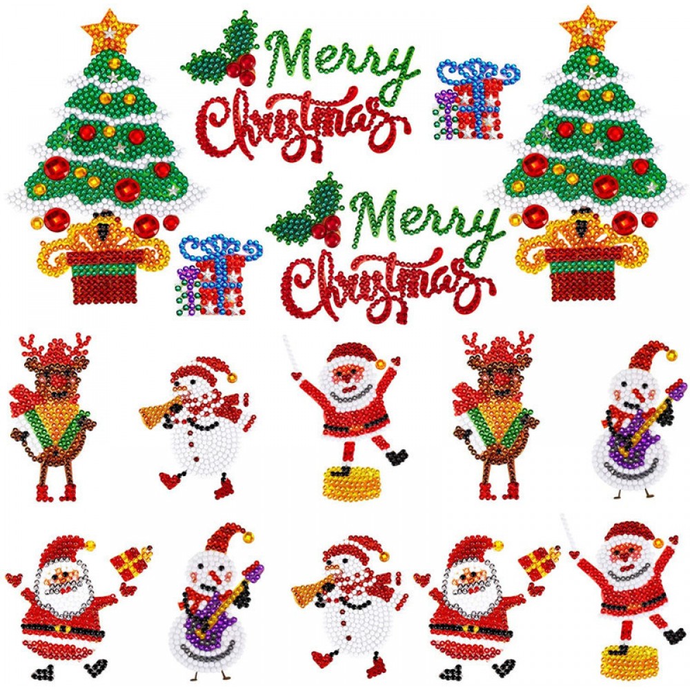 16pcs DIY Christmas Series Diamond Embroidery Mosaic Pasters Diamond Painting Stickers Kids Round Drill Sticker for Cup Book Phone Decoration