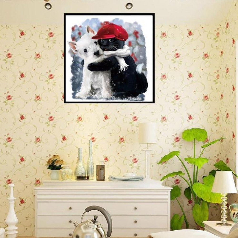 Black White Watercolor Pet Dog Diy 5d Full Diamond Painting Kits UK QB5459