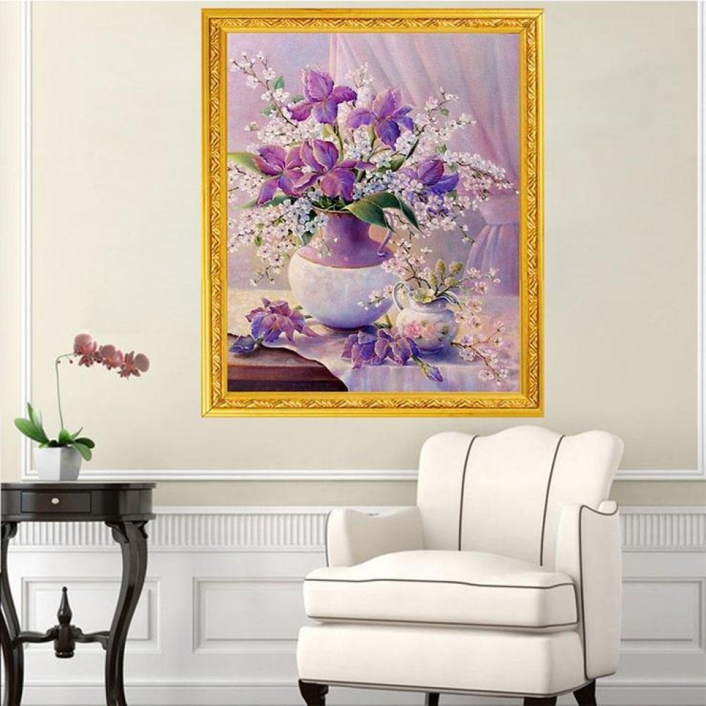 2019 Lavender And Pink Flowers 5d Diy Diamond Painting Cross Stitch Kits UK VM3668
