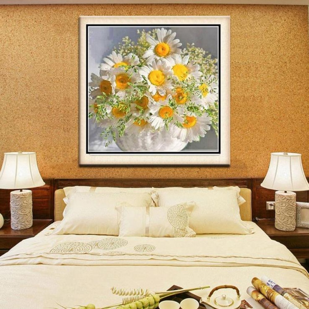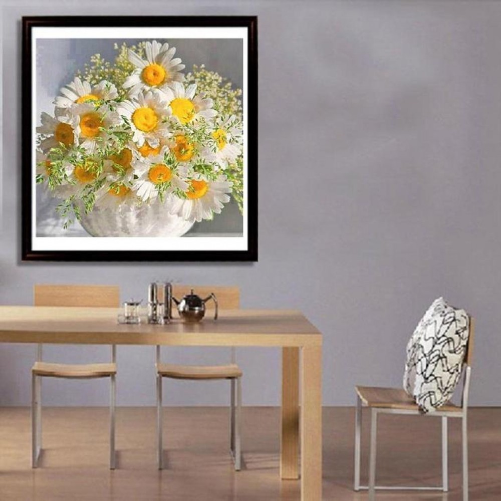 Cherap Decor White Yellow Flower 5d Diy Diamond Painting Beads UK VM2024