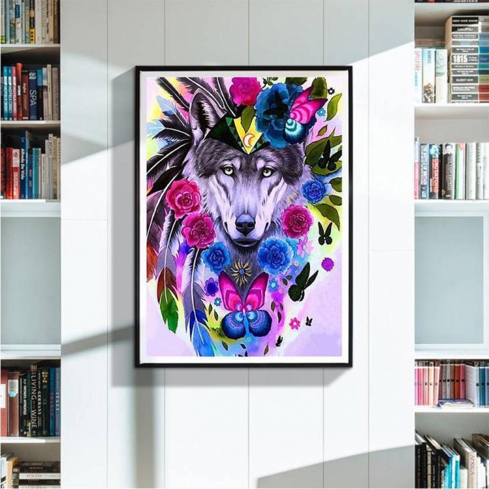 Watercolor Wolf Pattern 5d Diy Cross Stitch Diamond Painting Kits UK QB6638